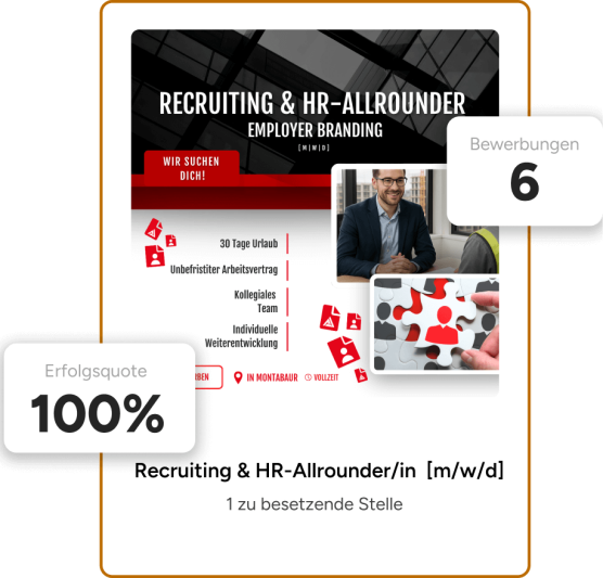 Wir setzen dir eine Social-Recruiting-Kampagne mit Erfolgsgarantie auf. Weil wir es können.